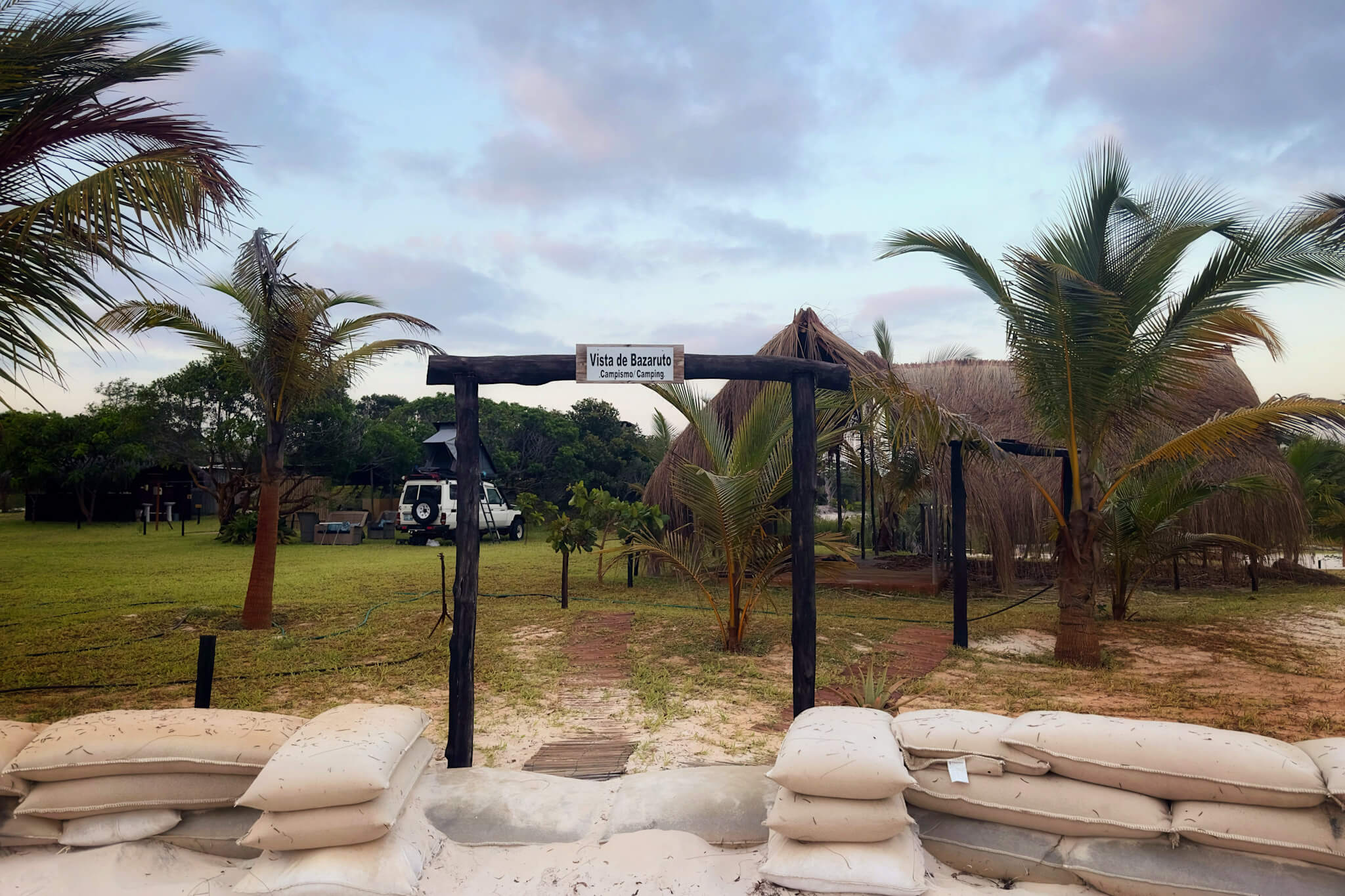2023 waren wir bereits in Inhassoro und haben bei Goody Villas übernachtet. Das Camp Vista de Bazaruto hatten wir seinerzeit bereits auf dem Schirm, allerdings hatte es sich für uns nicht ergeben, dorthin zu fahren. Das Camp ist entweder bei Ebbe über den Strand erreichbar oder ganztags über die hinteren Dünen. Dieses Mal sollte es so sein. Wir waren angemeldet und erreichten das Camp, nachdem wir uns einmal verfahren hatten. Der (ehemalige?) Missionar Lourens und seine Frau Sonya betreiben das Camp seit einigen Jahren und haben dort viel Schweiss und Liebe investiert. Für uns war es definitiv das schönste Camp, das wir in Mosambik gesehen und besucht haben.