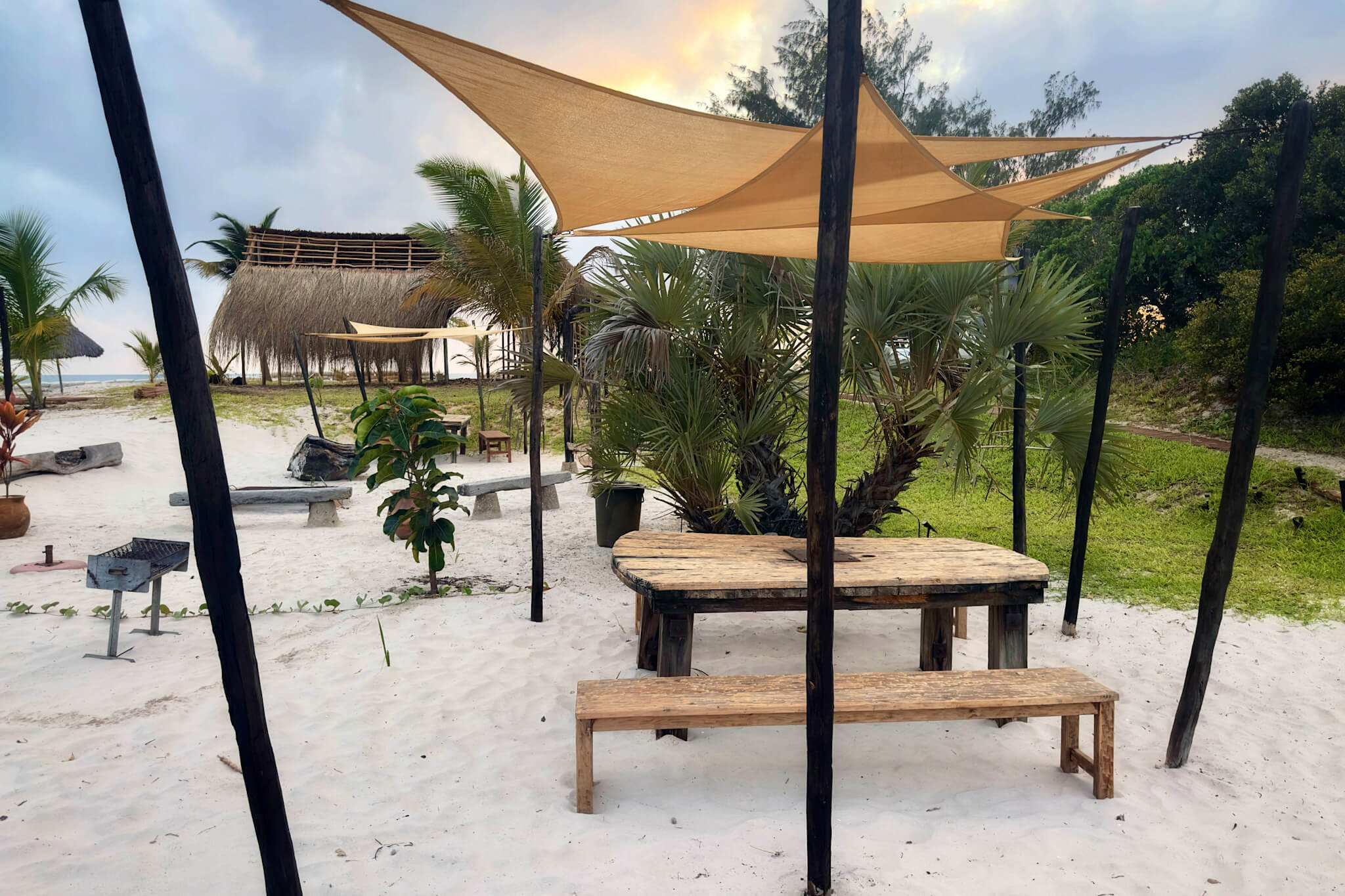 Wir hatten keinerlei Buchung und waren gespannt, wie es uns ergehen würde. Tatsächlich hatten wir auf der gesamten Strecke seit dem Grenzübertritt kein einziges ausländisches Fahrzeug gesehen. Einzig in Vista de Bazaruto trafen wir für zwei Nächte auf ein belgisches Ehepaar. Ansonsten sahen und trafen wir nur Einheimische. Morrungulo war komplett leer. Wir waren die einzigen Touristen und suchten uns einen Platz unter den Palmen, unmittelbar am Strand. Das Konzept dieses Camps war vollkommen anders. Von der Grösse her war es nicht vergleichbar. Während Vista de Bazaruto sich eher klein und familiär präsentiert, bietet Morrungulo eine Vielzahl an Campsites und Barracas und wartet zudem mit einem Restaurant und einem Pool auf.