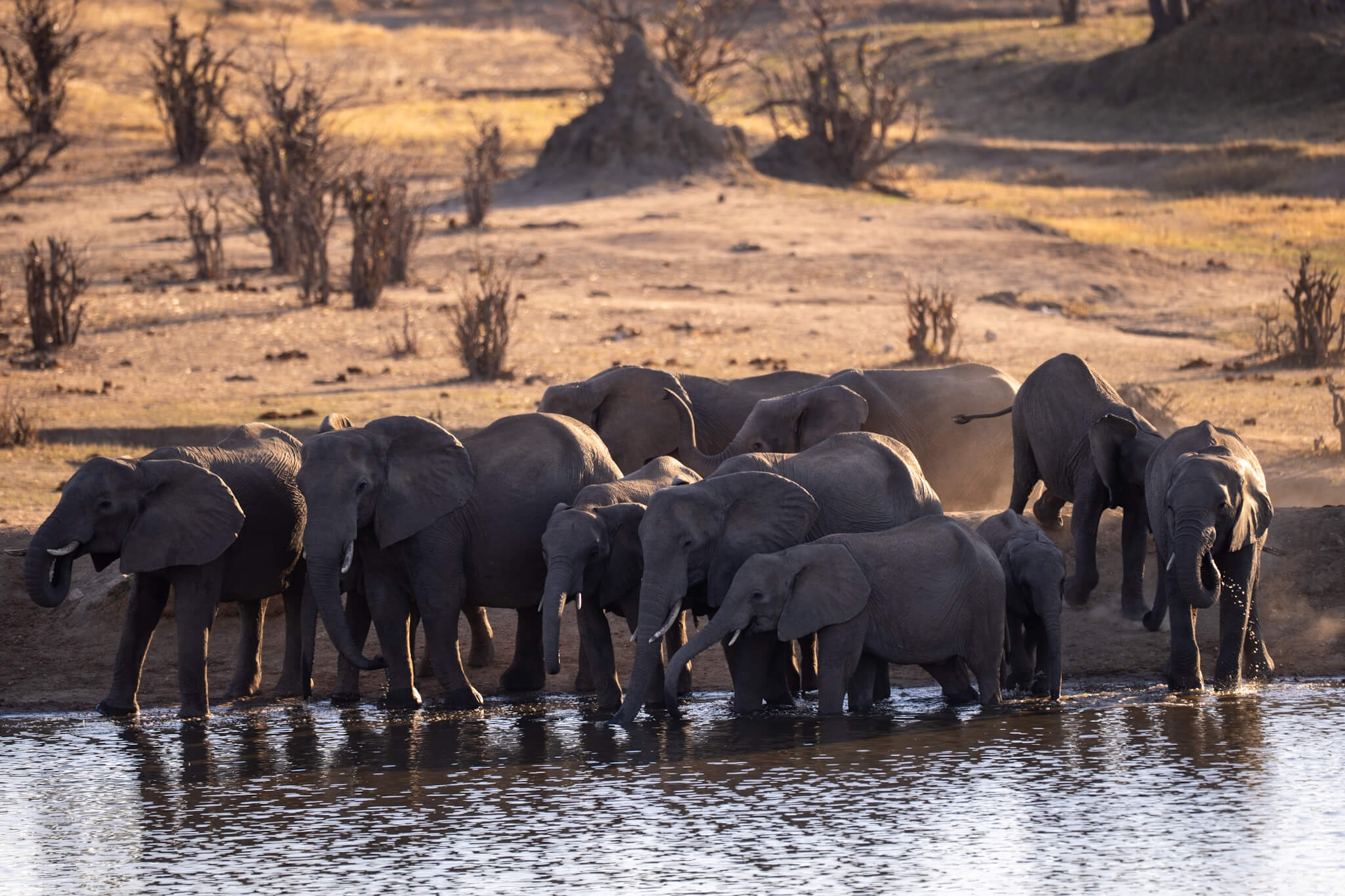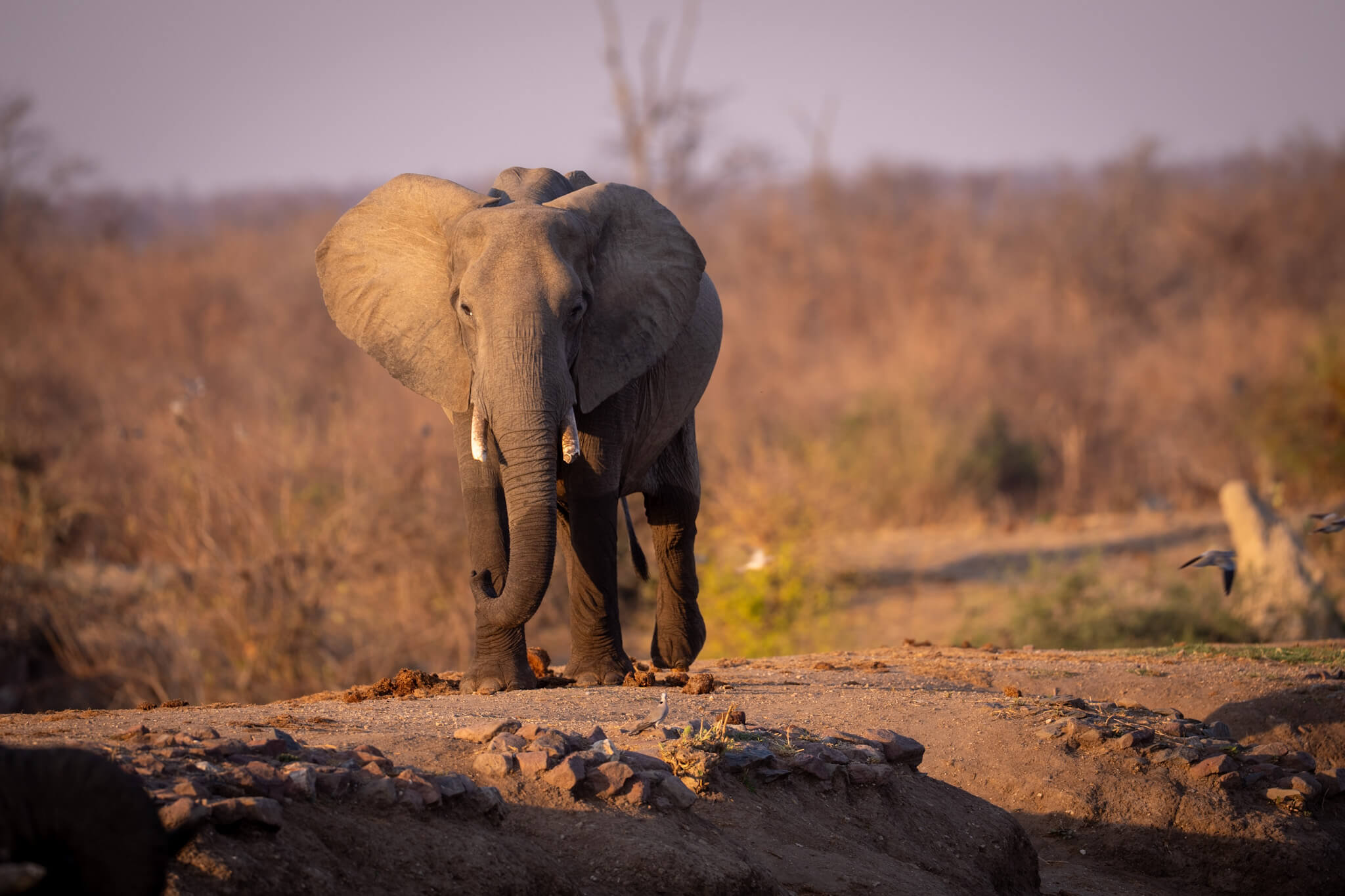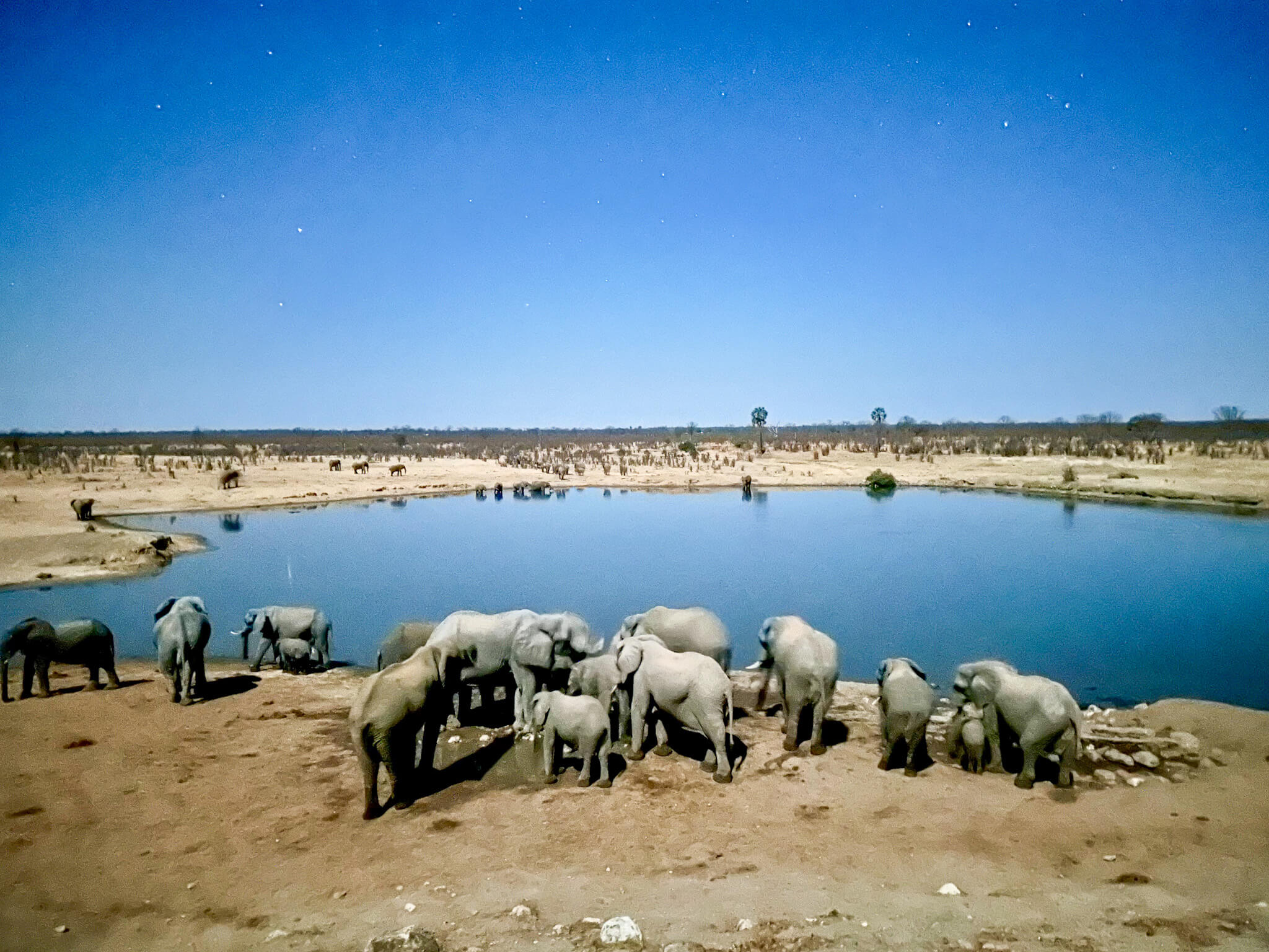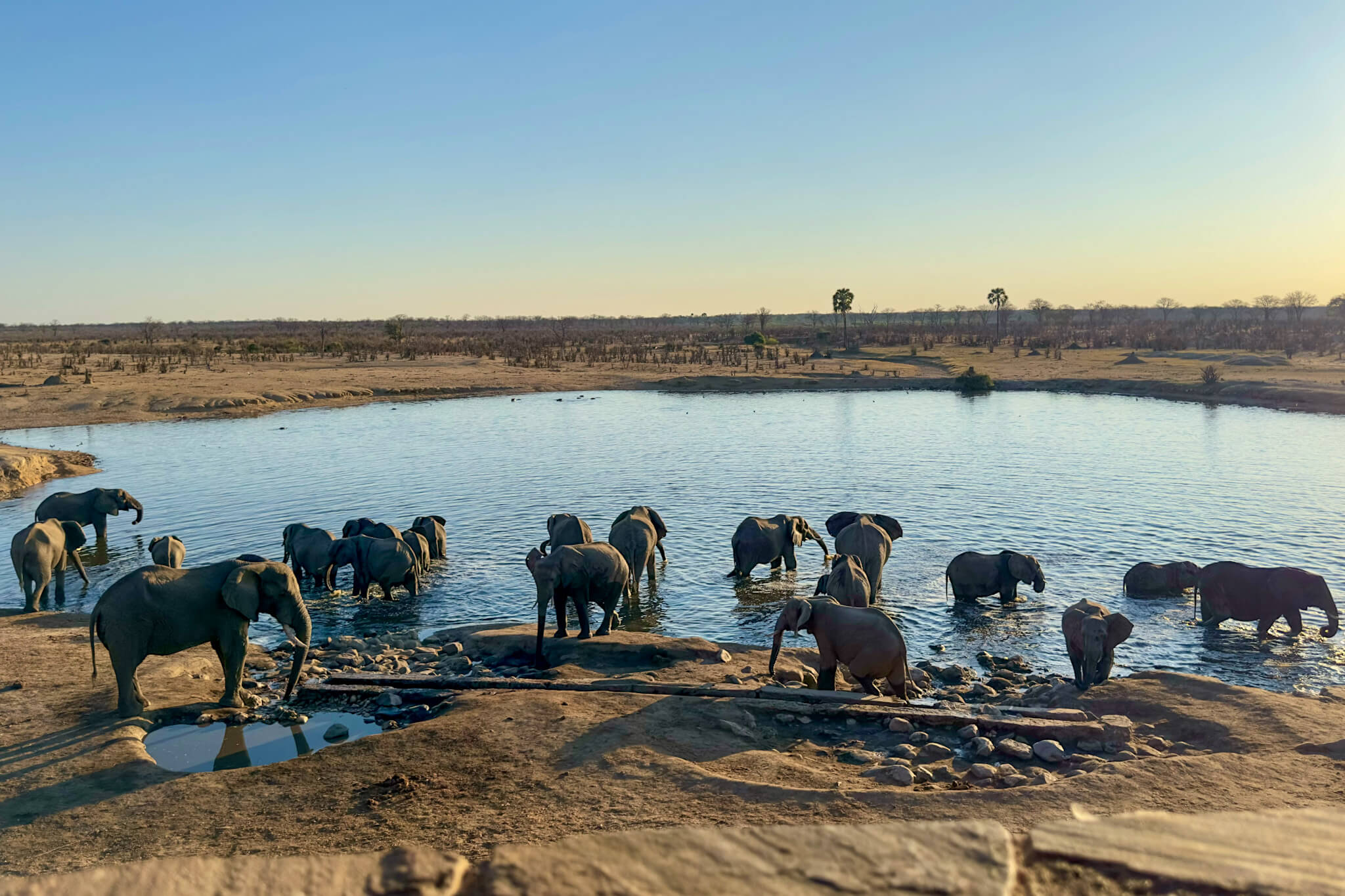 Abgesehen von kleineren Elefantengruppen, die abseits der Pisten unter Bäumen standen, war wenig los – daher verzichteten wir auf Game Drives und entspannten einfach in Sinamatella. Die erste Nacht waren wir fast allein, am darauffolgenden Nachmittag wurde es deutlich voller. Zufrieden brachen wir am nächsten Morgen Richtung Deteema Dam auf.